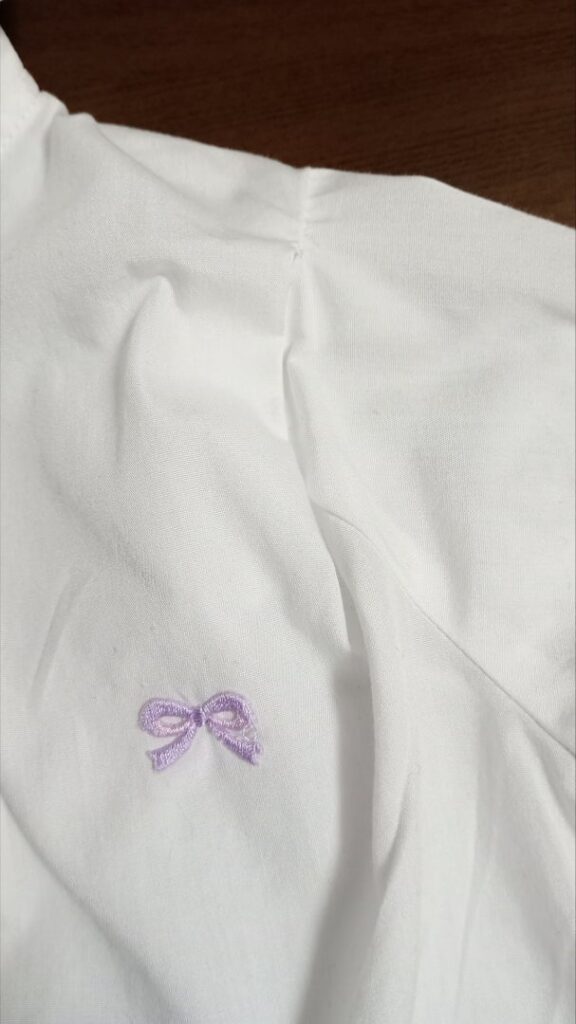 ブラウスのデザインに紛れてほとんど目立ちません。
